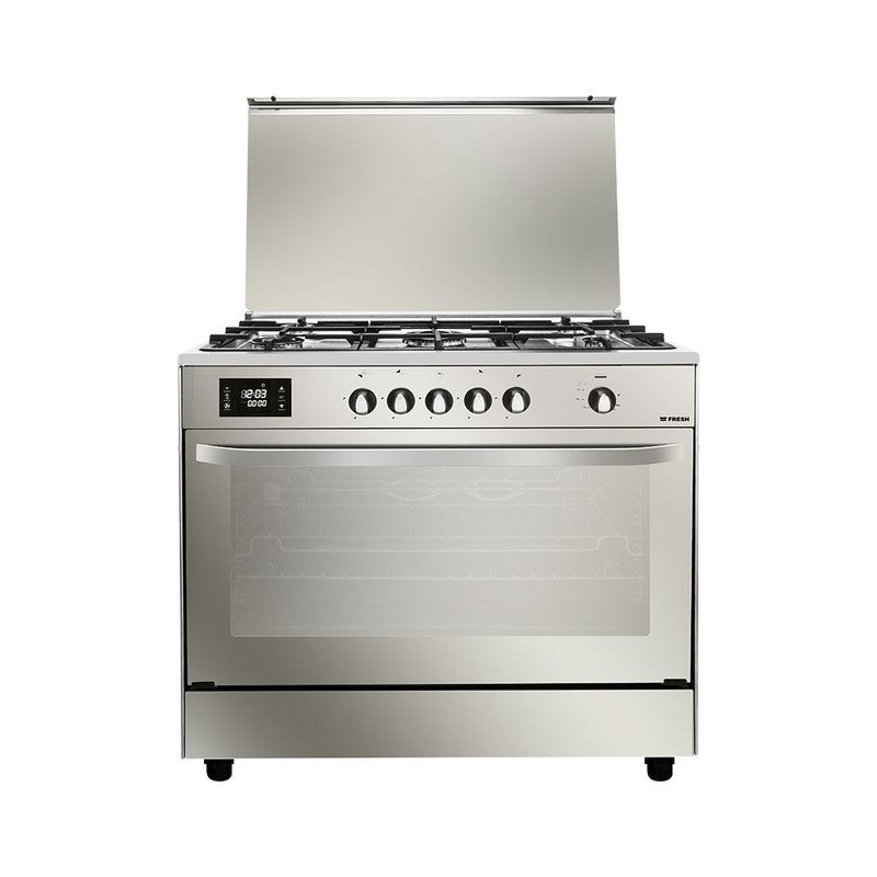 فريش بوتاجاز هامر، غاز، 90 سم، 5 شعلة، زجاج عاكس تحكم بأللمس، 16950 – فضي