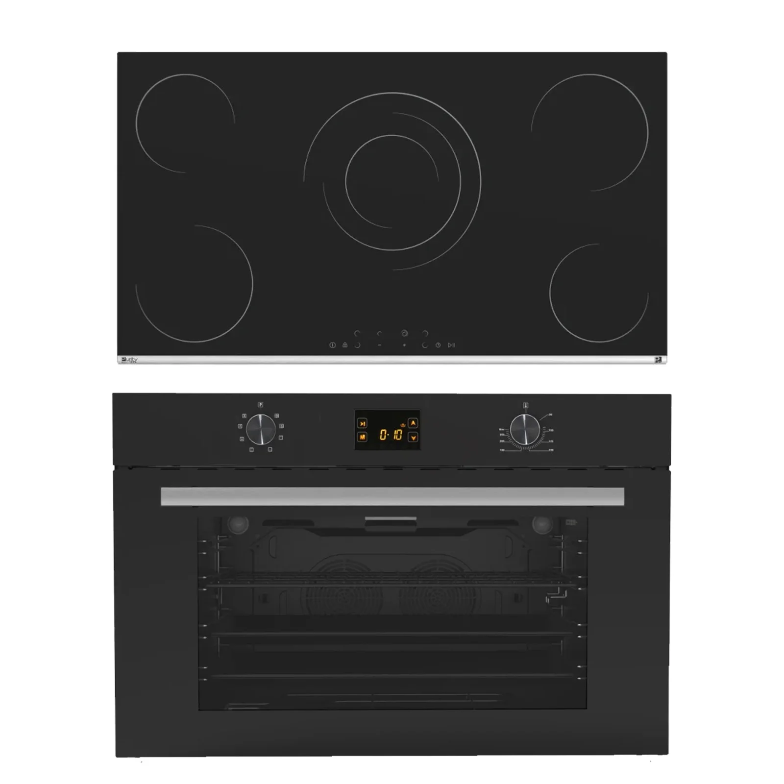 بيورتي بوتاجاز كهرباء بلت إن،90 سم، 5 شعلة، HPREE V9050 مع فرن كهرباء بلت إن، 90 سم، 105 لتر، ديجيتال، مروحة تبريد، KPT909EED GBL