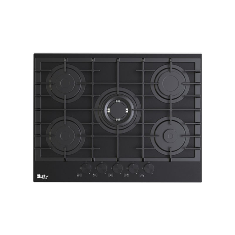 بيورتي مسطح غاز بلت إن، 70 سم، 5 شعلة، حوامل ثقيلة شديدة التحمل، HPT713G – اسود